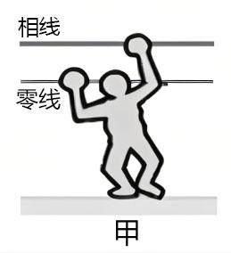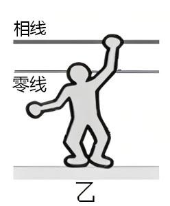 答案解析: 单线电击是人体站在导电性地面或接地导体上,人体某一部位触及带电导体,由接触电压造成的电击,乙符合。