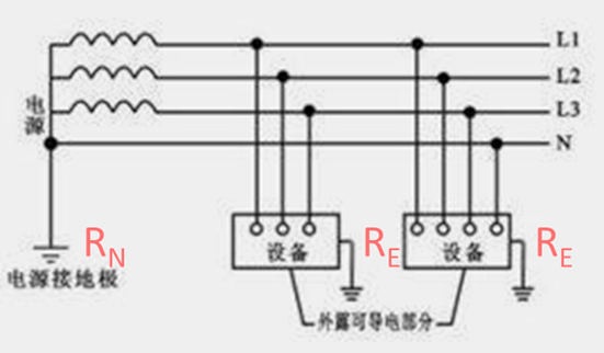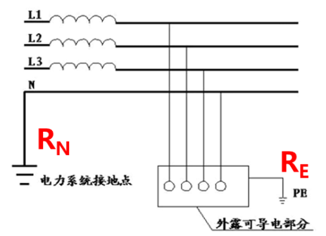 答案解析: 系统属于工作接地(TT系统),RE线称作保护接地电阻,N线称为中性线,能和相线构成工作回路提供220V的工作电压。故障电流通过双接地电阻构成回路,一般不能通过短路保护实现速断,即使RE<RN时但由于双接地电阻处于同一数量级,漏电设备对地电压一般不能降低到安全范围以内。