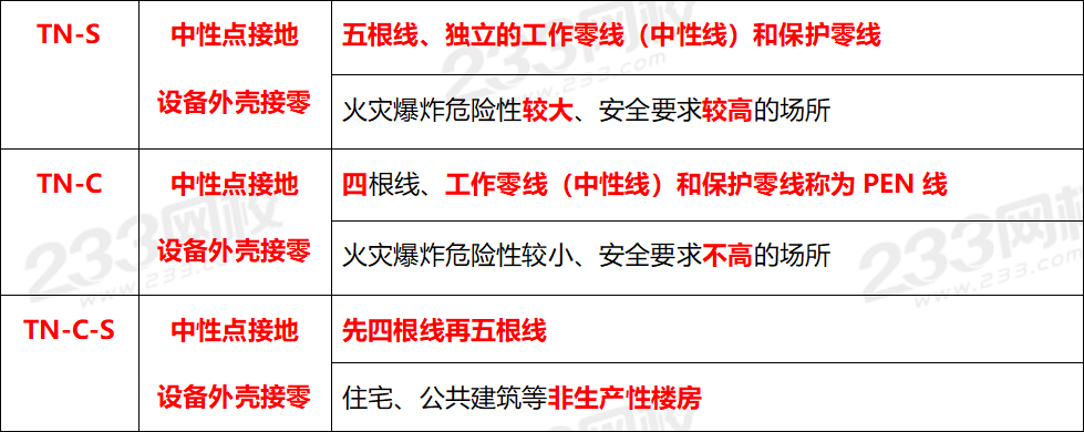 答案解析: 选项B正确。TN-S是保护零线与中性线完全分开的系统,用于爆炸危险,或火灾危险性较大,或安全要求较高的场所。