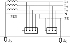 答案解析: 上述供电保护方式属于TN-C-S供电保护方式,系统中存在独立设置的N线、PE线;Rc能有效降低设备对地故障电压、缩短故障持续时间,防止直接接触电击需利用RN构成的故障回路促使装置动作;上述供电保护方式并不能将故障电压降至安全限制,通常利用速断保护实现防护,为实现速断要求采用过电流保护装置或剩余电流保护装置。