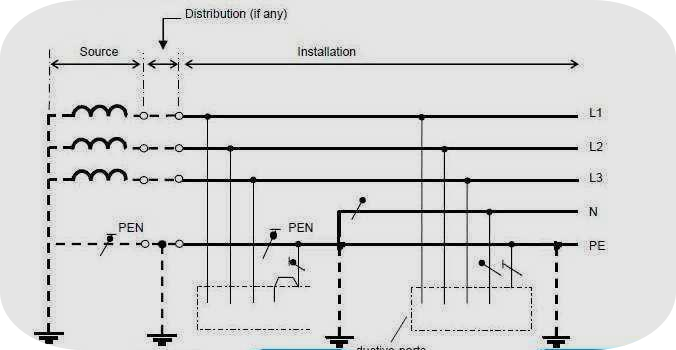 字母T表示中性点接地,字母N表示电气设备在正常情况下不带电的金属部分与配电网中性点(N点)之间连接。