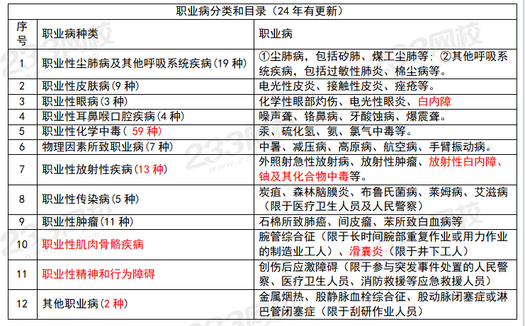 | 尘肺 | 煤尘、矽尘、矽酸盐尘 |