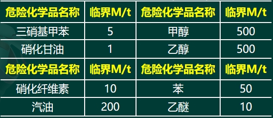 5、某大型化学品存储企业,分库存储不同的危险化学品。其存储的危险化学品临界量如下表: