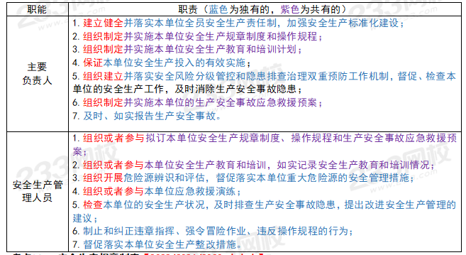 (2)有关于责任制、安全投入、报告事故、应急救援预案属于主要负责人的职责。