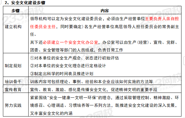 1.建立机构:“安全文化建设委员会”,生产经营单位主要负责人担任委员会主任,同时要确定一名生产经营单位高层领导人担任委员会常务副主任。