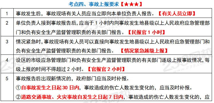 事故上报的时限和部门考点解析