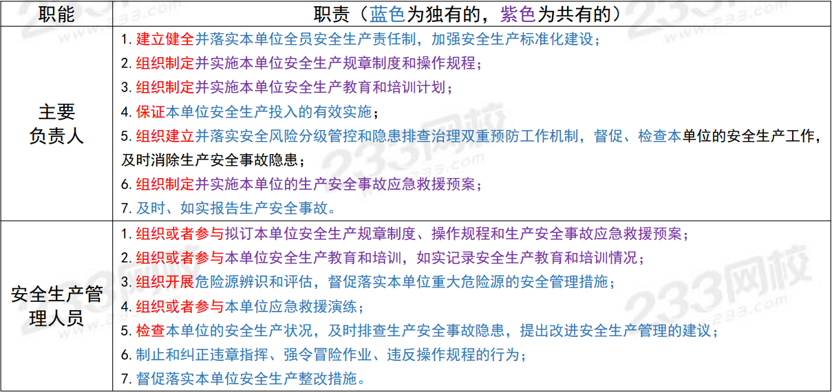 生产经营单位主要负责人职责考点解析