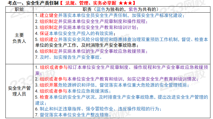 安全生产管理人员职责考点解析