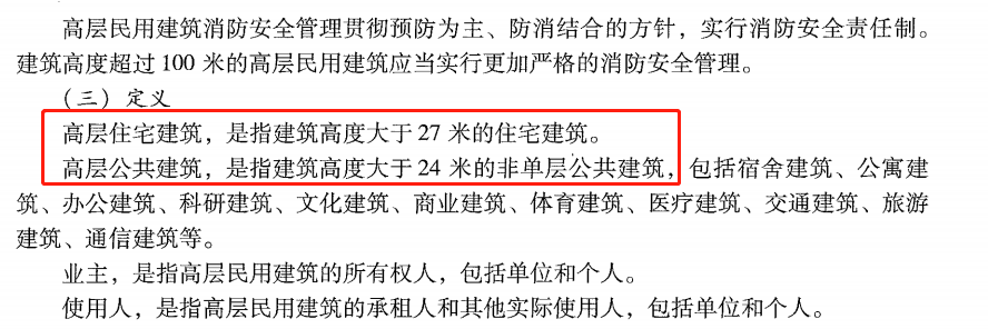 高层住宅建筑,是指建筑高度大于 27 米的住宅建筑