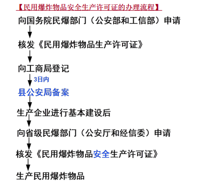 民用爆炸物品生产企业持《民用爆炸物品生产许可证》到工商行政管理部门办理工商登记,并在办理工 商登记后3日内,向所在地县级人民政府公安机关备案。