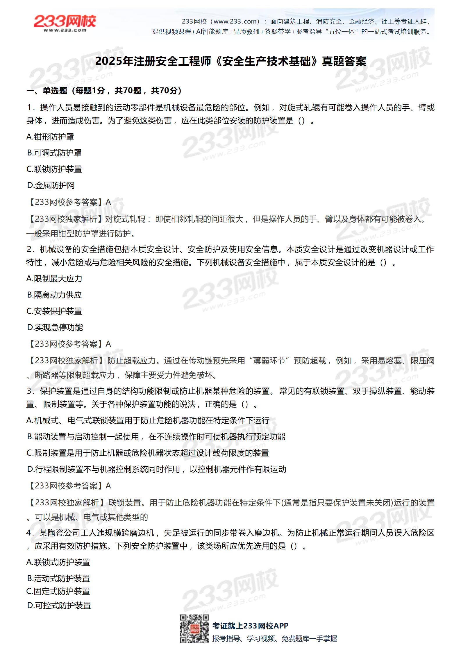 考试结束后,233网校会及时更新2025年安全生产技术试题及答案!大家可下方扫码进入小程序快速估分,及时知晓成绩!同时,233网校也预祝大家顺利突破及格线!