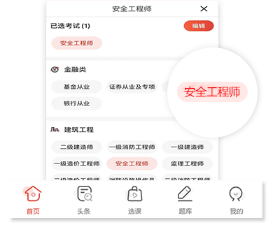 选择“安全工程师”后,选择APP底部【首页】按钮