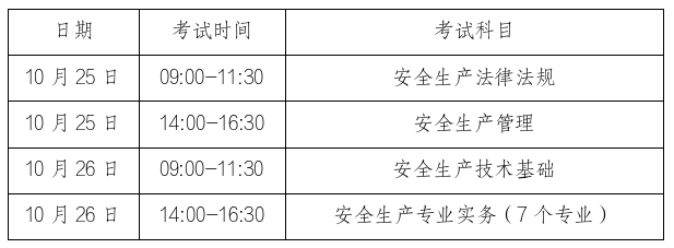 2025年中级注册安全工程师考试时间已确定为10月25日、26日。