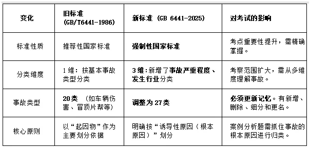 《安全生产专业实务》:所有专业(如化工、建筑、矿山等) 的实务科目均会涉及。在案例分析、危险有害因素辨识、事故类型判断等题目中,必须使用新标准。