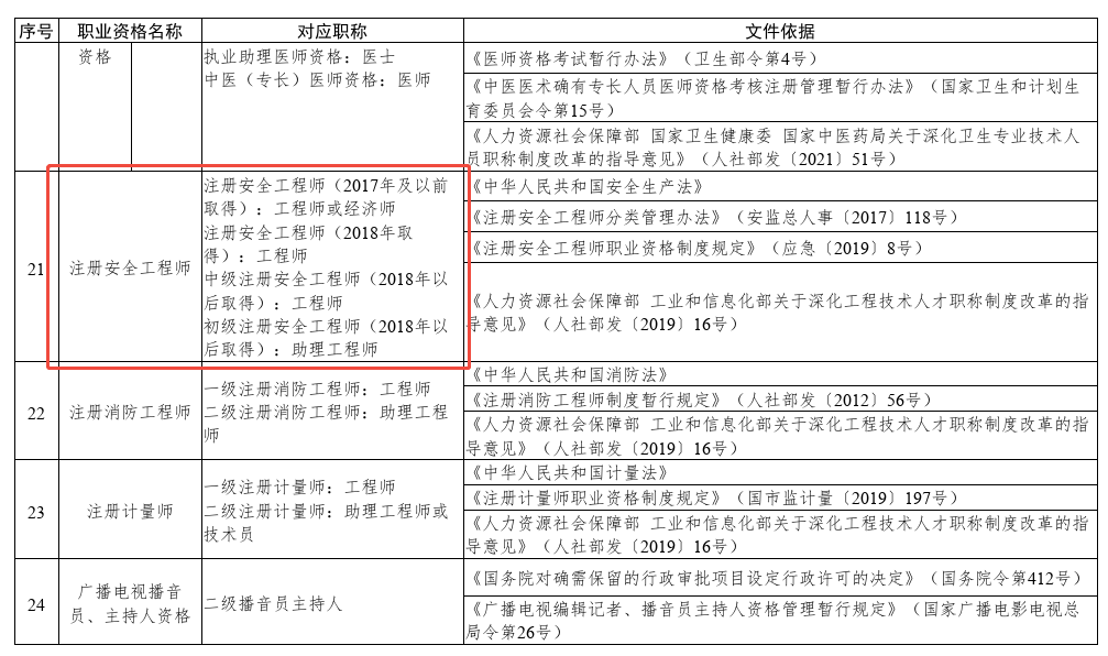 四川省人力资源和社会保障厅发布了《关于调整四川省部分专业技术类职业资格和职称对应关系的通知》,四川中级注册安全工程师对应工程师职称!详情如下: