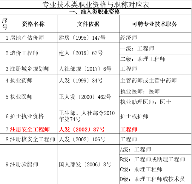 二、根据《人事部、国家质量技术监督局关于印发质量专业技术人员职业资格考试暂行规定》等文件有关规定,对于已经取消的质量等部分职业资格,原有资格继续有效,仍可视为具备相应系列和层级的职称,并可作为申报晋升高一级职称的条件(详见附表)。