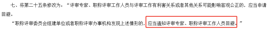 评审专家、职称评审工作人员与评审工作有利害关系或者其他关系可能影响客观公正的,应当申请回避。