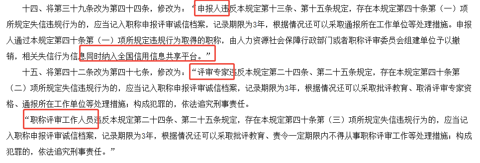 以往违规行为可能只是“当年评审不通过”,现在不仅可能被撤销已取得的职称,还会被记入3年诚信记录,且同步联动全国信用平台,对个人职业发展造成长远影响。