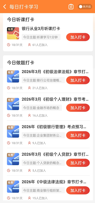 知识点打卡赢奖品:按照章节排序,通过“考点+试题”的形式,以月为单位,激励大家有进度的备考。部分考生反馈,跟着知识点打卡,能起到很好的复习作用。当然,坚持每天打卡,坚持天数阅读,就能获得更多奖励。赶紧去试试吧!