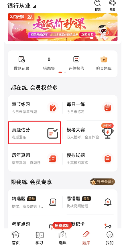 另外,每次考试结束后,考生可以通过233网校APP——题库——真题估分,及时对答案~