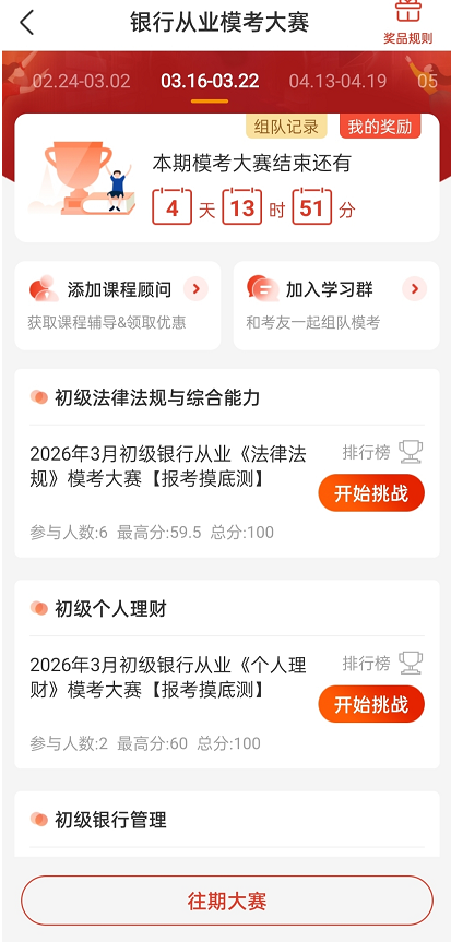 添加银行学霸君好友,可及时获得模考大赛时间,还能加入群聊与银行从业考友一起备考!