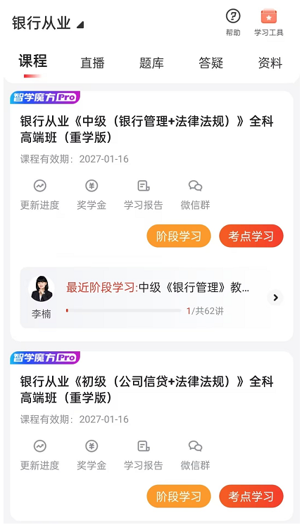 233网校课程:银行从业难度不大,但很多自学仍然考不过,只是因为不会规划、没有找对方法!报名参加233网校课程,赠送配套的学习资料+题库会员,不需要再去到处找题找资料。课程学习也是有规划的分阶段学习,跟着孙婧、赵聪、徐雨光、李泽瑞等233网校大咖老师,学习更安心!