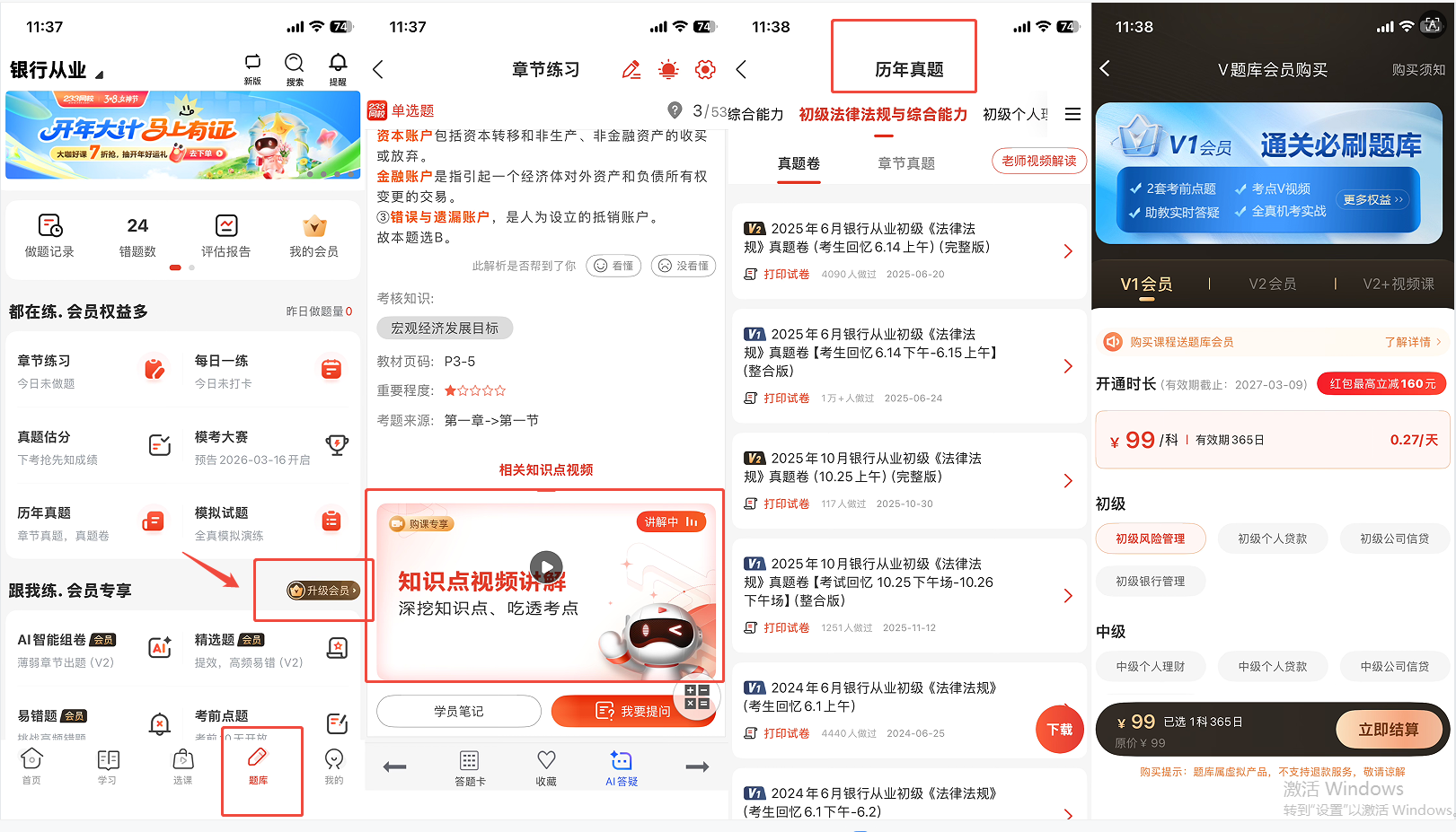 233网校APP银行从业资格证考试题库怎么用?我们可以从以下三方面入手!
