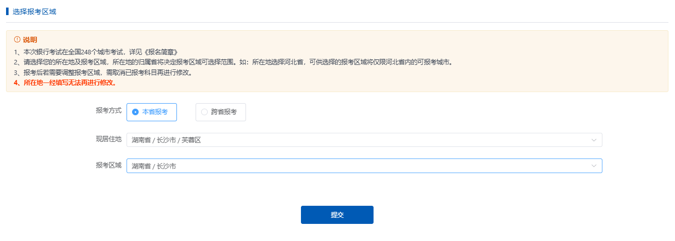 注意:报考区域选择,包括【本省报考】和【跨省报考】。正常情况下选【本省报考】即可。