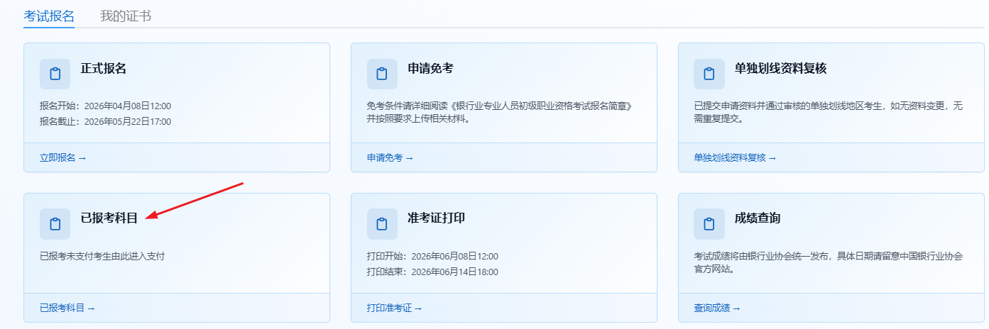 直接进入>>【新版】2026年初中级银行从业资格考试报名系统