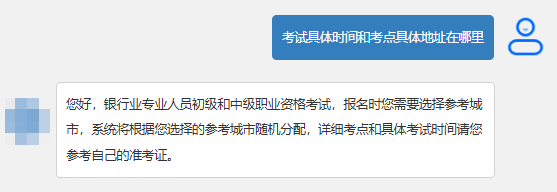 中国银行业协会官方客服回答如下:您好,银行业专业人员初级和中级职业资格考试,报名时您需要选择参考城市,系统将根据您选择的参考城市随机分配,详细考点和具体考试时间请您参考自己的准考证。