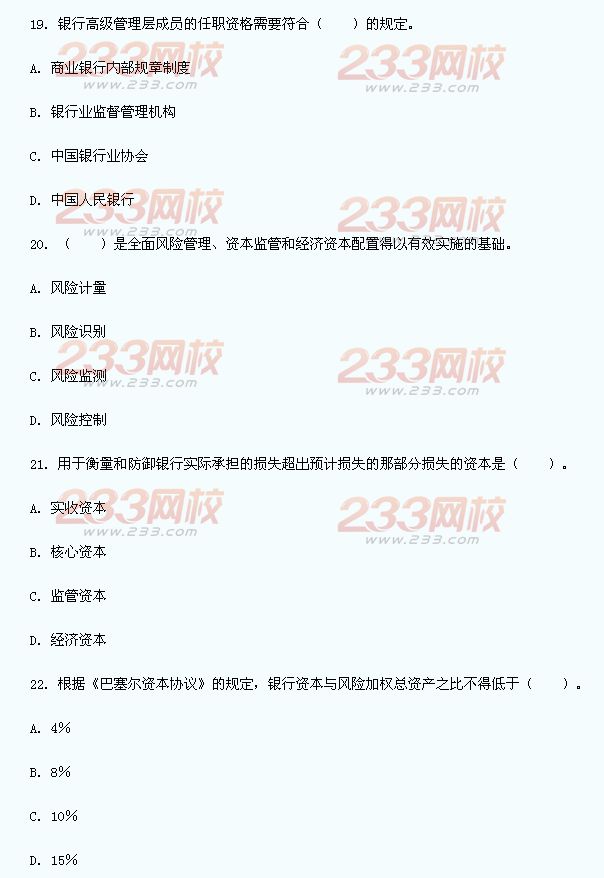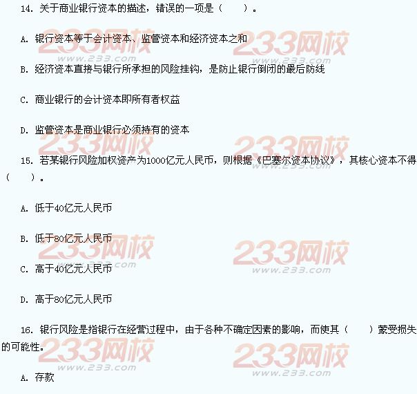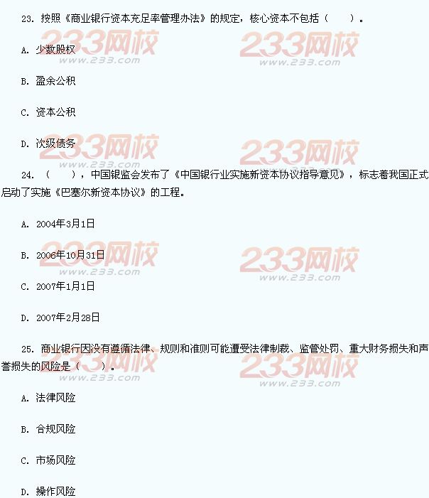 您现在的位置:233网校 >银行从业资格考试 > 银行初级 > 初级《法律法规与综合能力》 > 初级法律法规模拟试题
