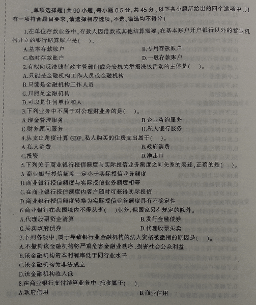 您现在的位置:233网校 >银行从业资格考试 > 银行初级 > 初级《法律法规与综合能力》 > 初级法律法规模拟试题