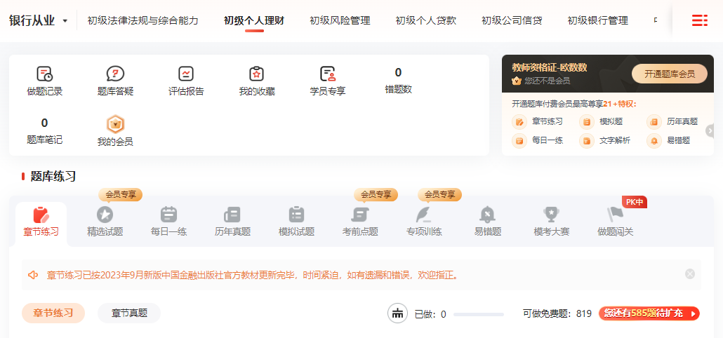 银行从业初级理财题库可登录233网校,有免费试题可刷,开通会员后,有更多精品高质量试题可刷。