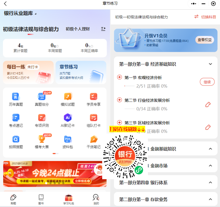 以2025年银行从业初级理财题库为例,233网校题库拥有这些试题资源: