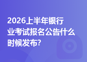 2026上半年银行业考试报名公告发布时间:考试计划一般在12月底-1月左右发布,报名公告一般在4月发布。具体等协会发布通知。进入2026年银行从业资格考试报名入口>>想及时知晓2026年银行从业资格证考试时间,可预约考试提醒,考试时间公布后,及时提醒你。扫码即可预约2026年银行从业资格证考试提醒↓↓银行从业报名要准备什么?一、考生照片在进行报名时,需要提供考生照片,该照片将用于准考证及职业资格证书(请勿上传过度修饰或美化的照片),照片格式具体如下:1、上传本人最近一年1寸免冠白底证查看更多>