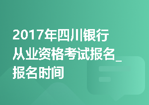 2017年四川银行从业资格考试考点设置如下,请考生,就近选择考试地点。下半年北京银行从业资格考试报名于8月份开始。报名一般持续1个月。考生可登录中国银行业协会网站和东方银行业高级管理人员研修院网站进行报名。初级:成都、南充、绵阳、泸州、西昌;中级:成都、南充7月31日中国银行协会发布最新动态:初级职业资格考试报名分为个人网上报名和会员单位集体网上报名两种方式,时间为8月14日至9月22日;【报名须知】中级职业资格考试采取个人网上预报名与正式报名相结合的方式进行,其中预报名时间为8月14日至9月1查看更多>