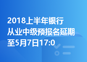根据中国银行协会发布的2018年上半年银行业专业人员职业资格考试报名延期通知得知,2018年上半年银行从业中级预报名时间应广大考生的要求,预报名延期至5月7日17:00截止,请广大互相转告,尽快报名!   备考2018年银行从业资格的时间越来越短了,很多考生表示很焦灼,没时间复习!别急,233网校可以帮助你利用分分秒秒学习。取证班快速入门,系统掌握核心考点>>  2018上半年银行从业中级预报名时间  2018年3月19日9:00-5月7日17:00  2018上半年银行从查看更多>