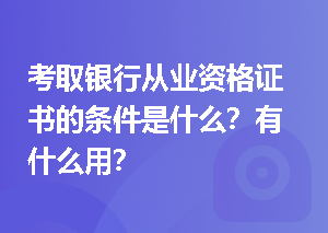 考取银行从业资格证书的条件是什么?取得银行从业资格证书后又有什么用呢?相信第一次接触银行从业资格考试的小伙伴都想了解,下面学霸君就为大家介绍一下:一、考取银行从业资格证书的条件是什么?1、报考条件银行从业资格考试又分为初级考试和中级考试,其中:(1)初级银行从业资格考试条件遵守国家法律、法规和行业规章;具有完全民事行为能力;取得国务院教育行政部门认可的大学专科及以上学历或者学位(在校大学生亦可报考)。(2)中级银行从业资格考试条件遵守国家法律、法规和行业规章,具有完全民事行为能力,并符合下列一项查看更多>
