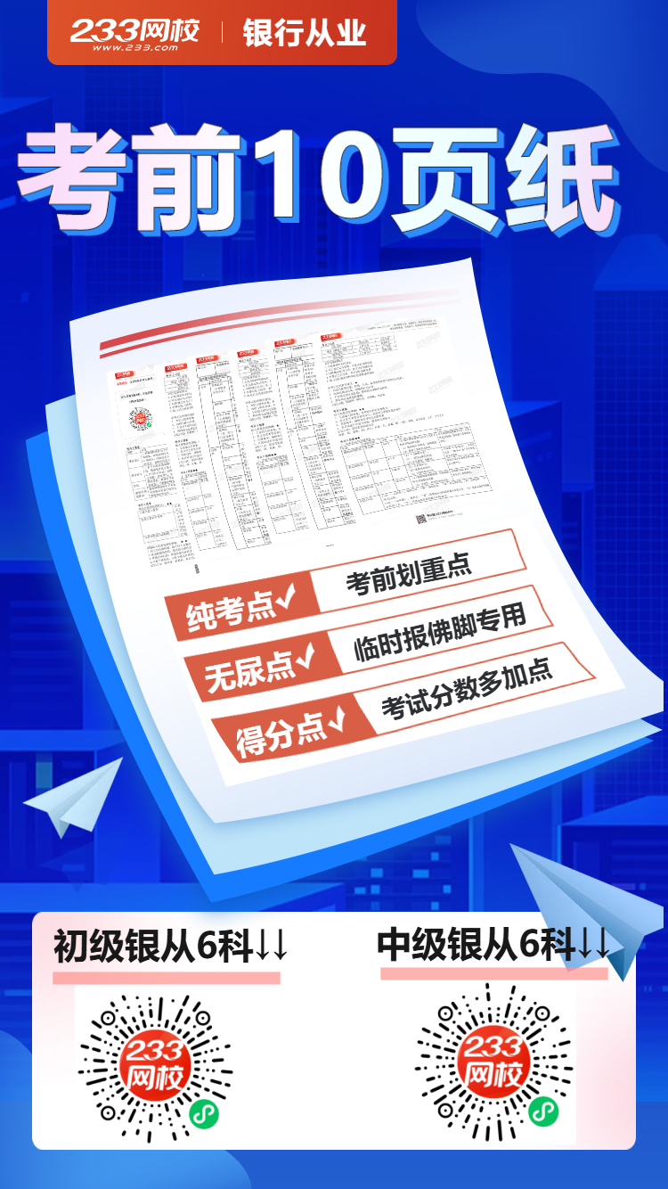 银行从业考前10页纸考前助力冲刺,根据历年考情,精心筛选恒重“核心点”,每个考点都经过了反复推敲,是专门针对2025年考期整理的核心资料!可以帮助你在考前冲刺阶段,科学高效掌握各个章节核心考点!