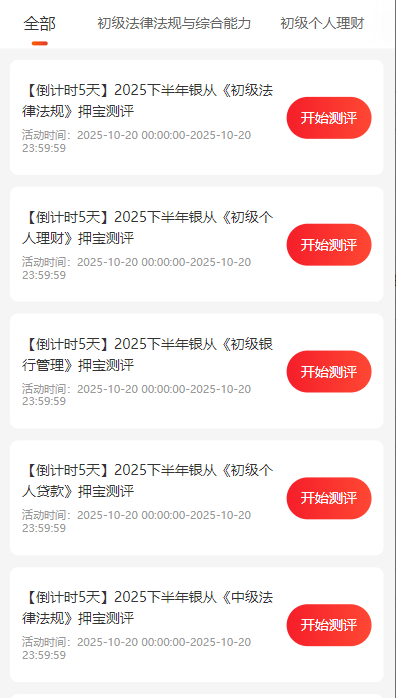 ✅测评科目:初级法律法规、初级个人理财、初级银行管理、初级个人贷款、中级法考法规、中级银行管理、中级个人理财