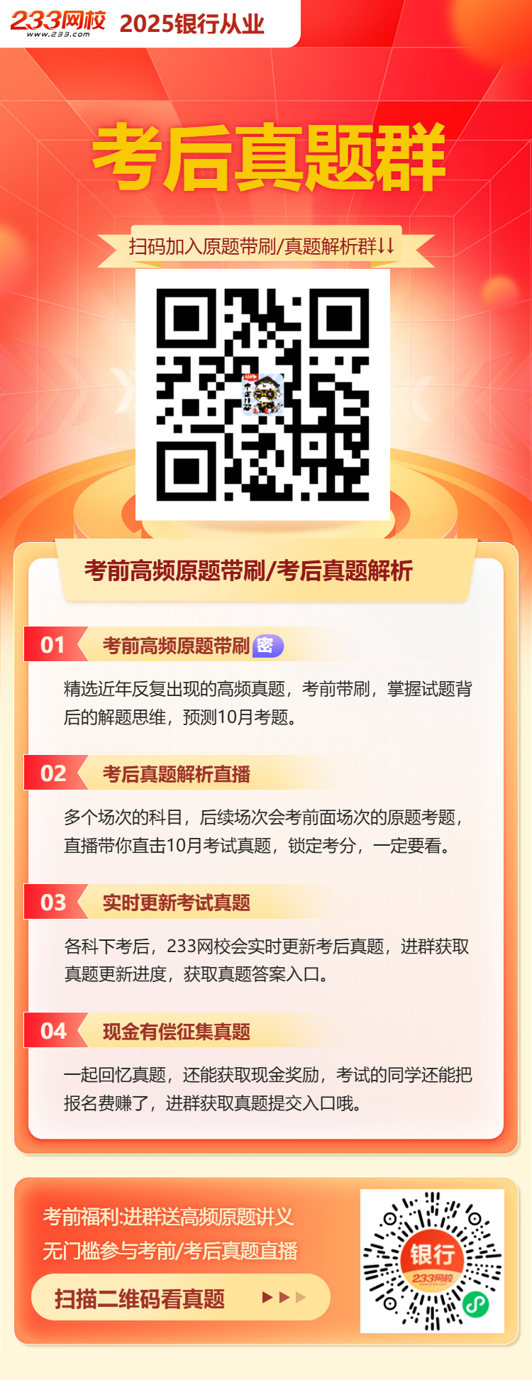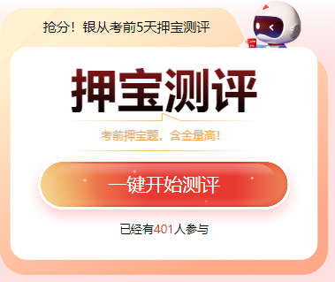 注意:银行从业考前押宝评测,每天一场,仅开放24小时,不可补考,错过即关闭!