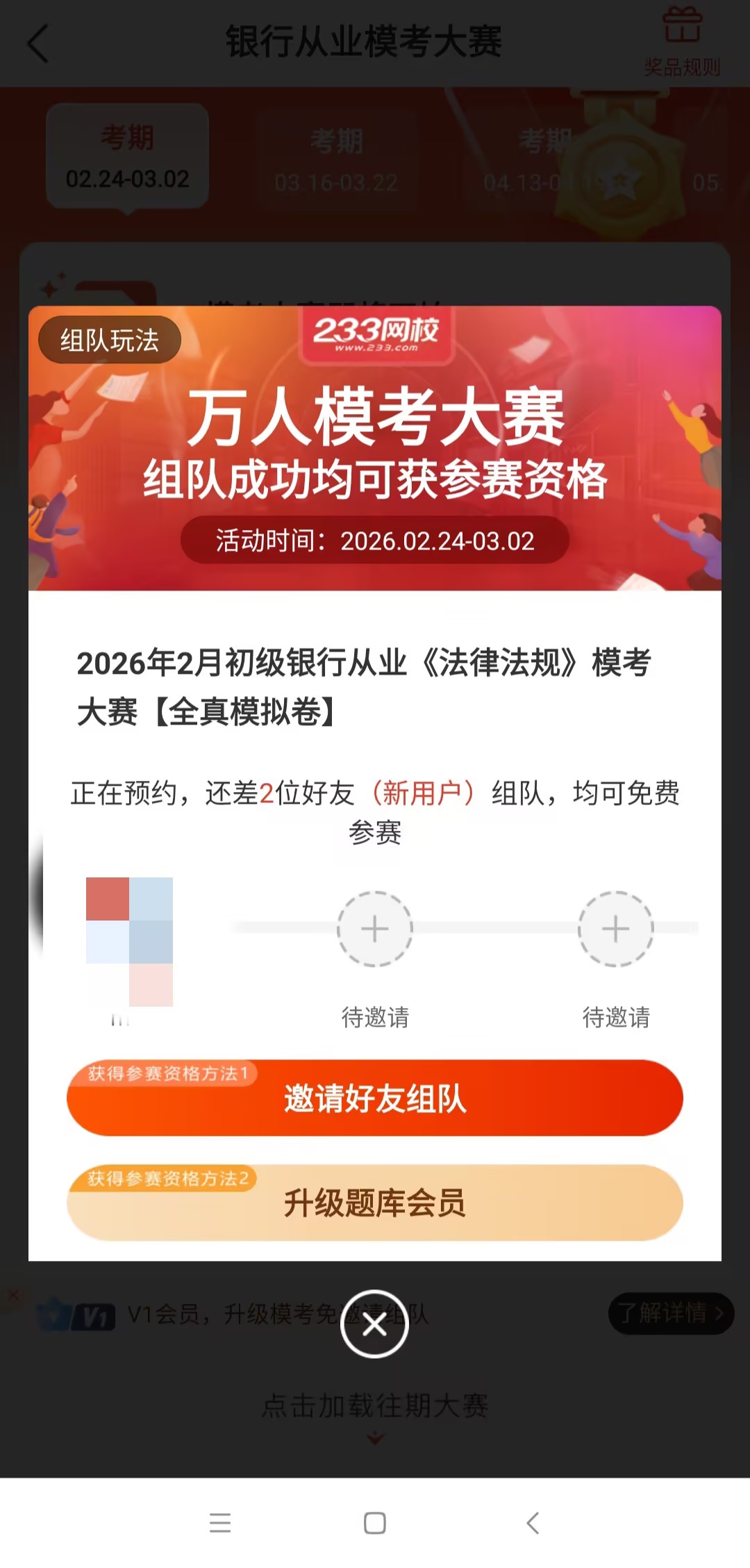 模考大赛组队扫码找银行君