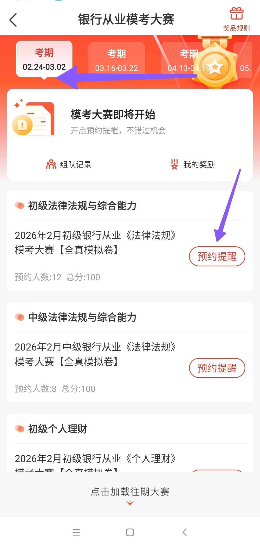 2026年银行从业考生可以在每期开赛之前单独预约提醒,也直接一次性完成全年模考大赛订阅!均是免费!