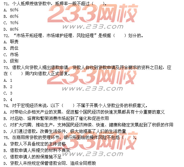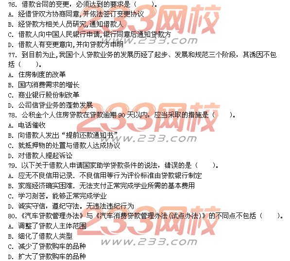 您现在的位置:233网校 >银行从业资格考试 > 银行初级 > 初级《个人贷款》 > 初级个人贷款真题