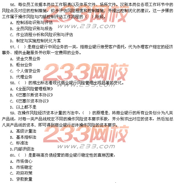 您现在的位置:233网校 >银行从业资格考试 > 银行初级 > 初级《风险管理》 > 初级风险管理真题
