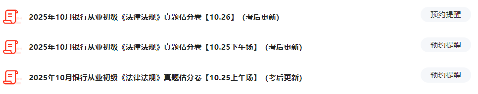 2025下半年银行从业考试法律法规初级有三场考试,中级一场考试,2025下半年银行从业考试法律法规真题在下考后陆续公布。