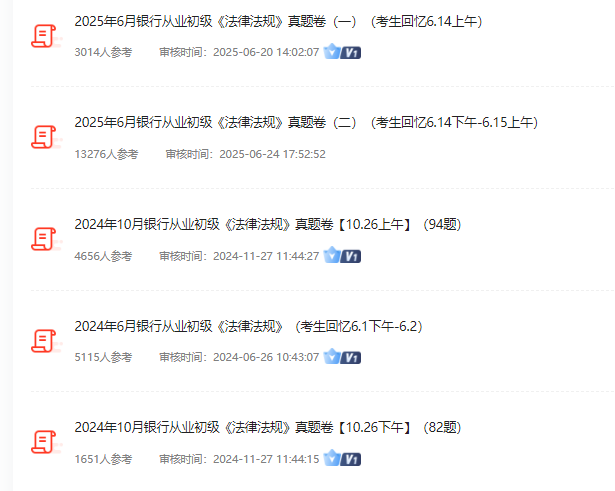2025下半年银行从业初级法律法规考试一共考三场,分别是:10月25日9:00-11:00,10月25日13:00-15:00,10月26日13:00-15:00。三场考试会有重复的考题,且同考点题目多,如果你是在后续进考场,那么一定要看前面场次的真题。