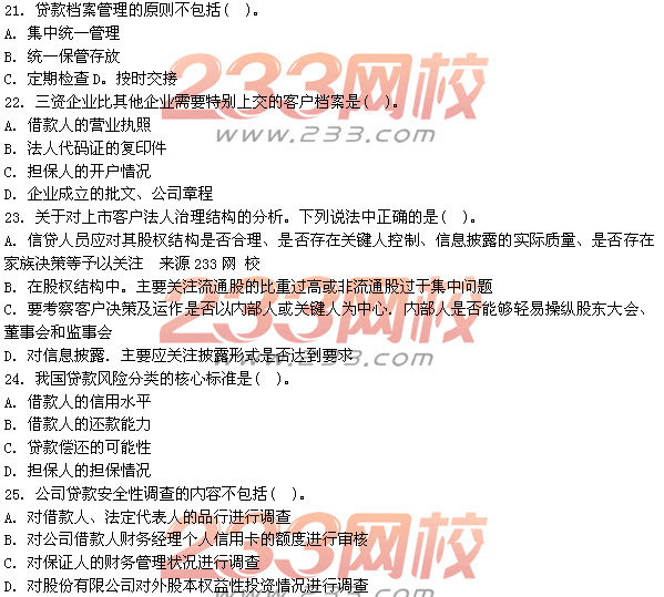 您现在的位置:233网校 >银行从业资格考试 > 银行初级 > 初级《公司信贷》 > 初级公司信贷真题