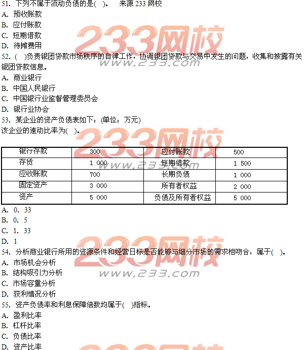 您现在的位置:233网校 >银行从业资格考试 > 银行初级 > 初级《公司信贷》 > 初级公司信贷真题