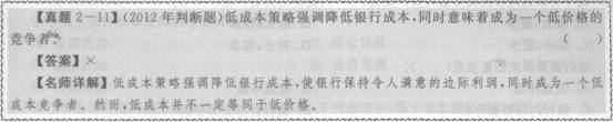 低成本策略强调降低银行成本,使银行保持令人满意的边际利润,同时成为一个低成本竞争者。在顾客对价格十分敏感的情况下,竞争基本上是在价格上展开的,此时成本领先战略特别奏效。